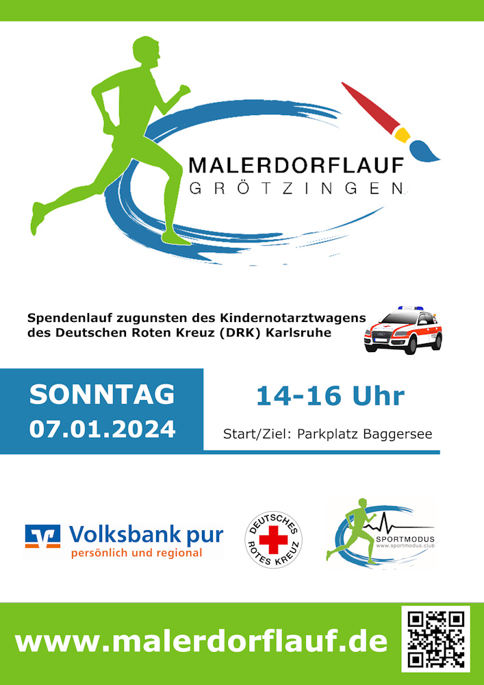 Am Sonntag 07.01.2024 15:30 Uhr findet im Rahmen des 5. Malerdorflaufs der "1. Grötzinger-Kita-Lauf" mit Kindern aus Grötzinger Kitas statt. Die Teilnahme ist kostenfrei. Start ist am Parkplatz Baggersee Grötzingen.