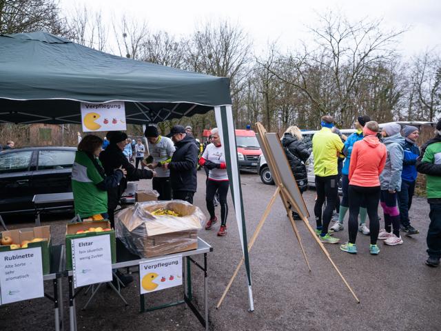 Für kostenfreie Verpflegung ist gesorgt mit Wasser, Äpfel und dem Sportlergold: Bananen. Der Lauf findet auch bei schwieriger Witterung statt.