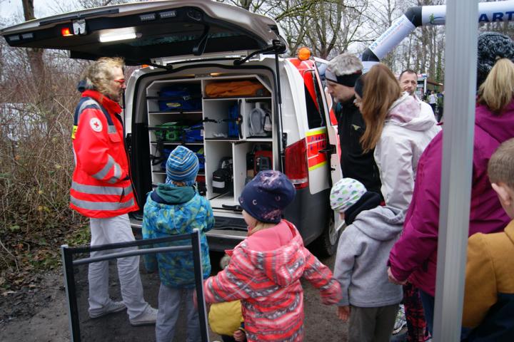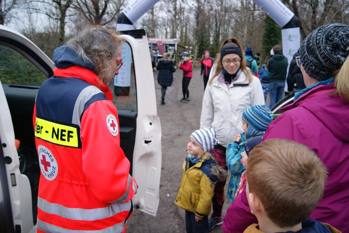 Das angepasste Konzept wurde gut angenommen, so dass rund 150 Bewegungsfreudige teilnahmen. Das Team des DRK-Kindernotarztwagens freute sich sehr über die 2000 Euro Spende zum Erhalt des Wagens.